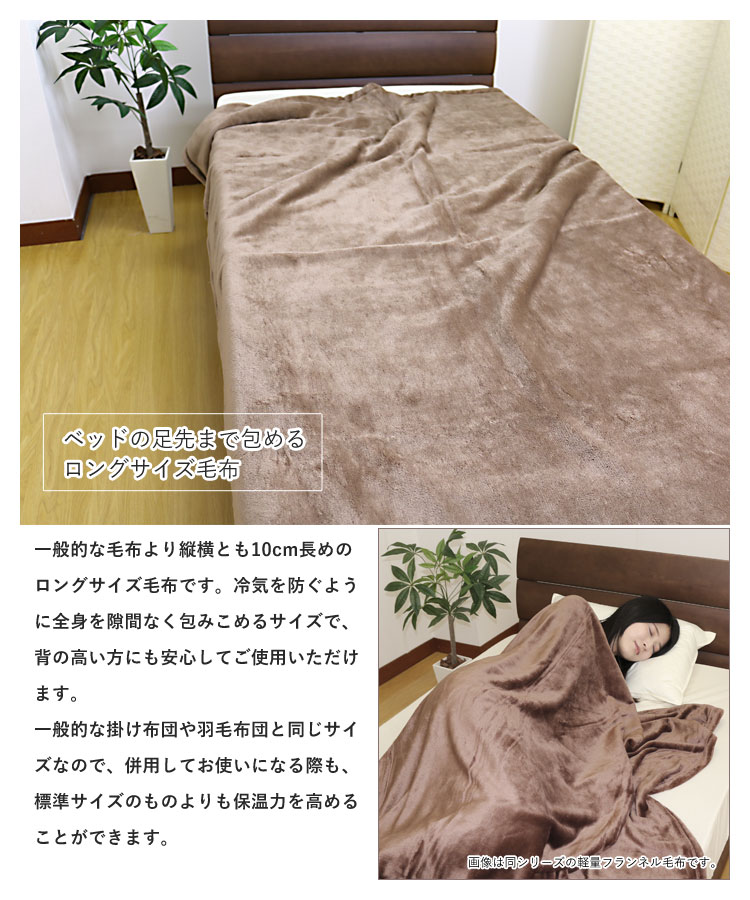 ◆一般の毛布に比べ、縦横が10cmずつ長めのロングサイズです。
