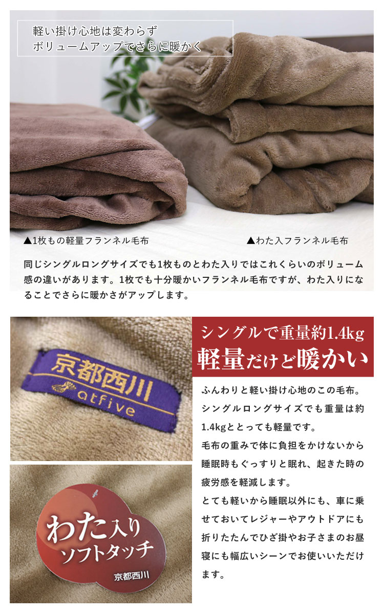 ≪あったかフランネルに中綿入でボリュームアップ≫ ◆ふんわりやわらかフランネル加工の毛布を2枚合わせて中にわたを入れました。
