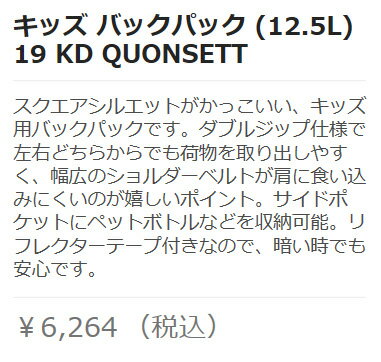 【DC19 19 KD QUONSETT】 キッズ バックパック (12.5L) ディーシー キッズ ジュニア 子供用 リュックサック スクエアシルエットがかっこいい、キッズ用バックパックです。